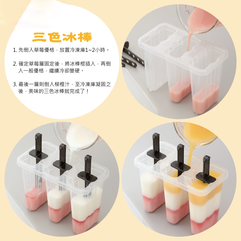 ✍️使用方式:將調製好的原料倒入後,蓋上蓋子,放入冰箱冷凍庫中冷凍,取出後即可食用。