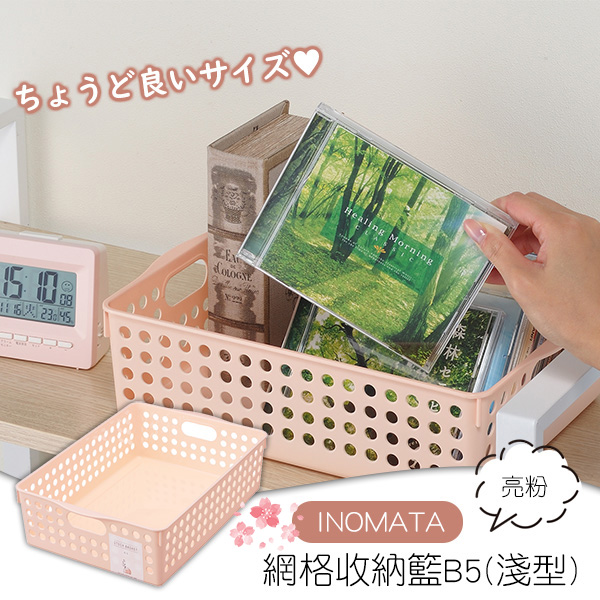 即將//【INOMATA】網格收納籃B5(淺型)-亮粉