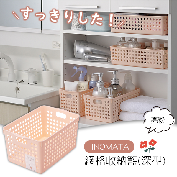 即將//【INOMATA】網格收納籃(深型)-亮粉