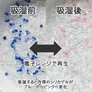 除濕粒子從藍色 ➭ 變粉紅時,代表已吸足水分!