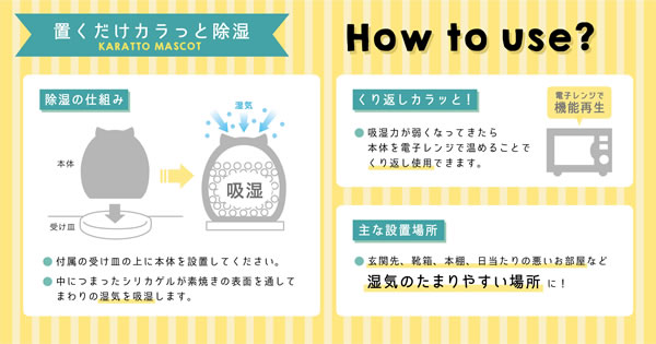 將動物放在附帶的托盤上,透過無釉表面吸收周圍的水分,進行空間除濕。