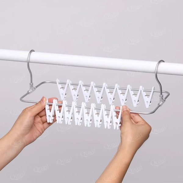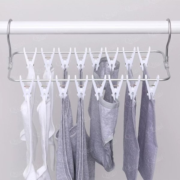 ✅ 雙排長方設計:共16個夾子,不佔位還能曬更多