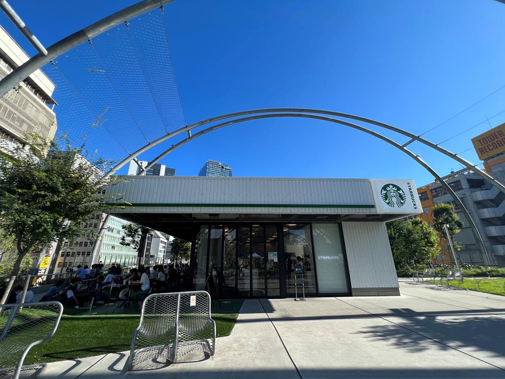 三樓的公園平台連結兩個街區,設有戶外運動場地、草地,而且有潮流教父藤原浩設計的星巴克,可以買杯咖啡在這裡休息。