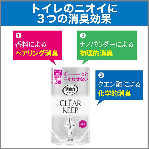 ●利用2種除臭方式(奈米消臭分子-物理性除臭、檸檬酸-化學性除臭),針對如廁後立即散發的尿味,發揮極佳的除臭效果,保持浴廁潔淨感。