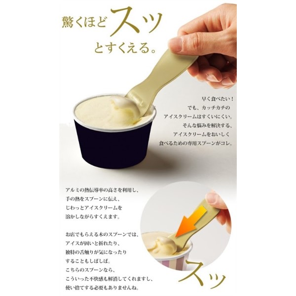 專業的冰淇淋湯匙,是用鋁合金材質,除了抗氧化及防鏽之外,還有一個重要功能,就是導熱ㄛ