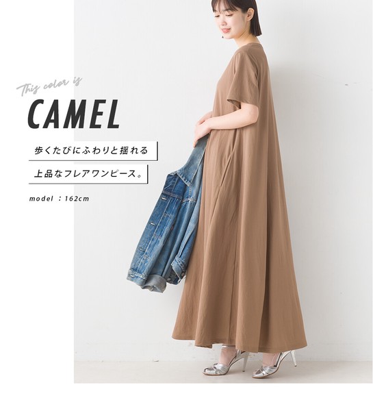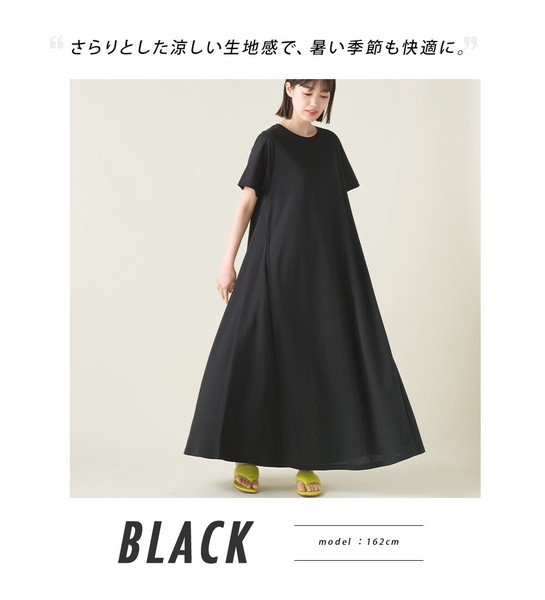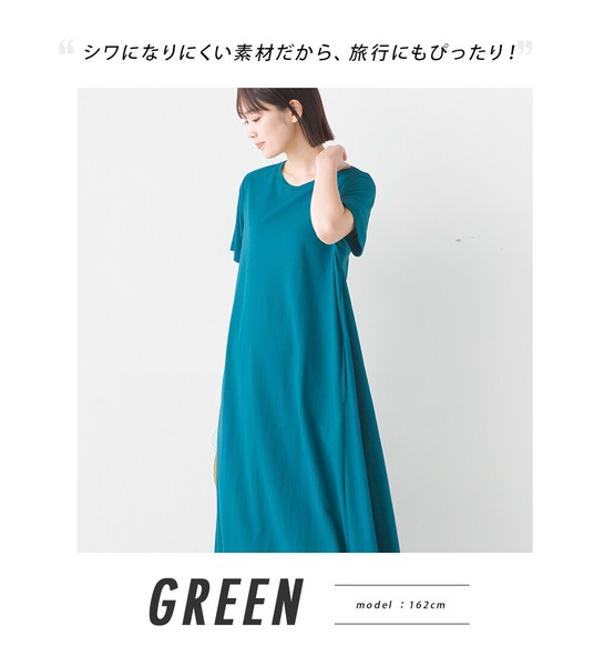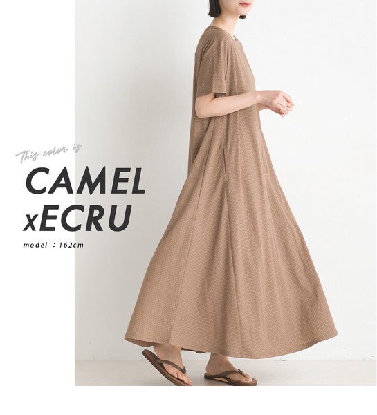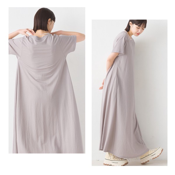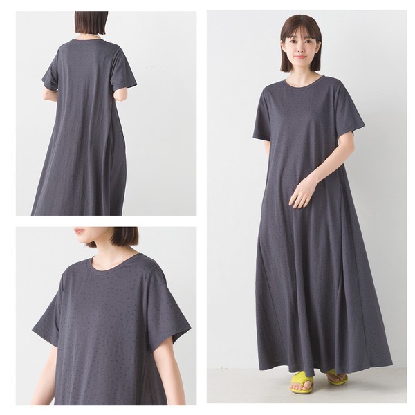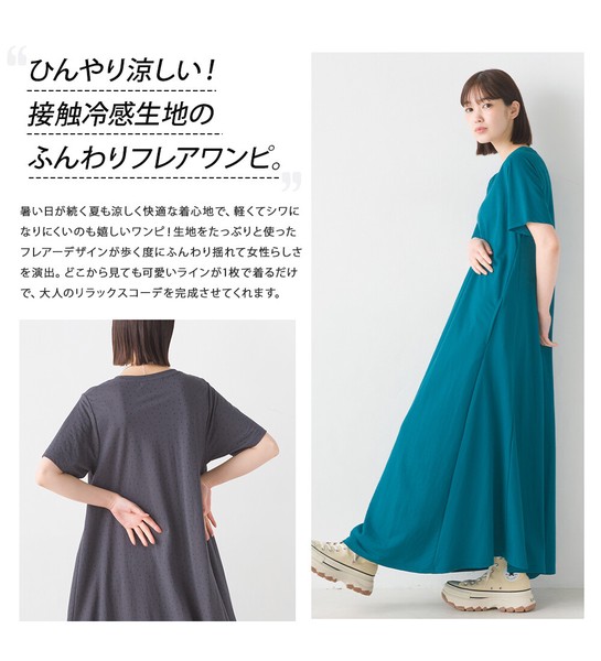 這件雷ヨン尼龍材質的フレアワンピース,採用了接觸冷感機能,即使在炎熱的夏天也能保持涼爽舒適。