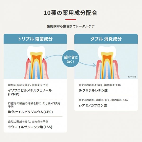 ❣️ 含有3種殺菌成分、2種消炎成分、氟素、沸石等10種藥用成分,全面呵護牙齦和牙齒