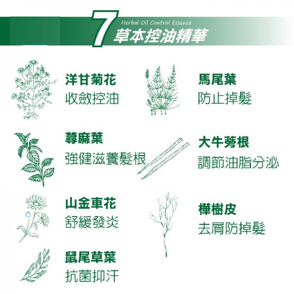 專為油性髮而設計的「七草本控油豐盈洗髮精」
