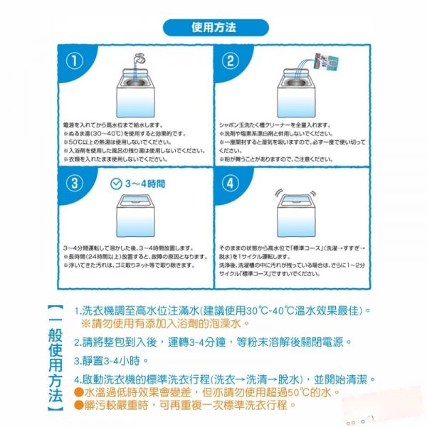 1.洗衣機調至高水位注滿水(建議使用30℃~40℃溫水效果最佳)。