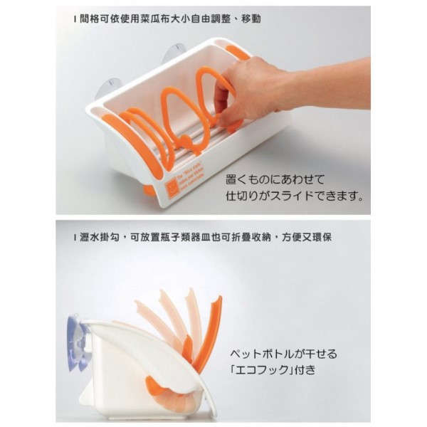 間隔可依菜瓜布大小自由調整、移動,不擔心大小不合無法收納囉!