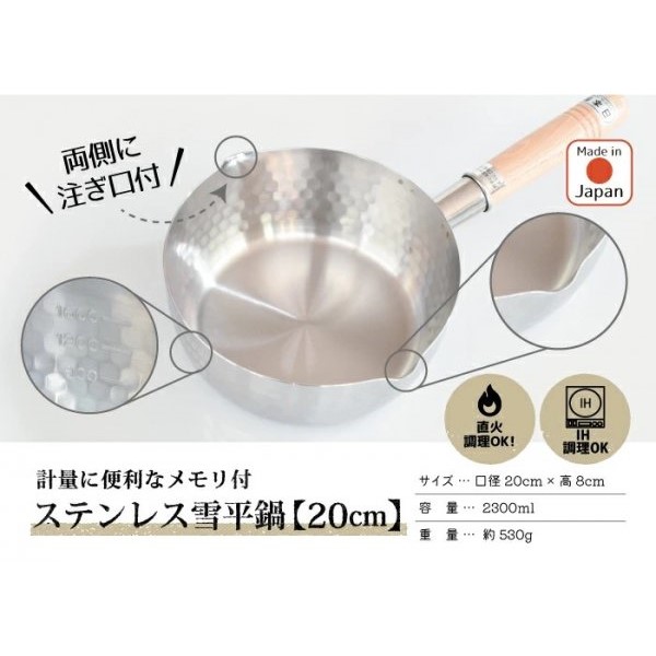 現貨//【吉川】槌目紋不鏽鋼雪平鍋20cm