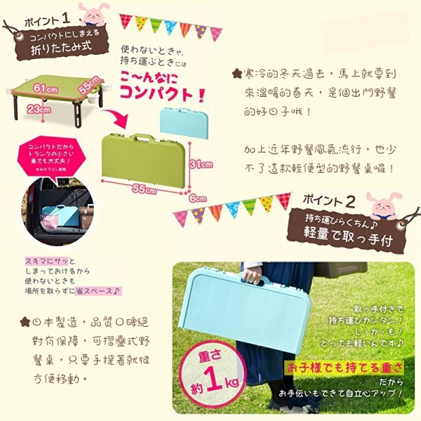 可摺疊式野餐桌,只要手提著就很方便移動。